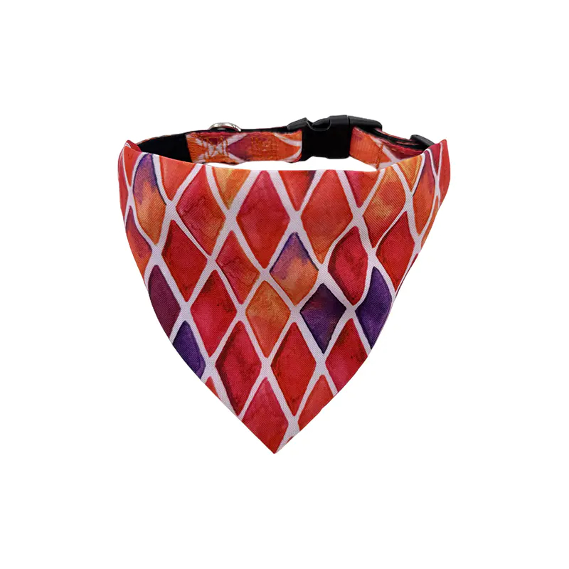 bandana hewan peliharaan . Poliester memiliki karakteristik cepat kering sehingga hewan peliharaan tetap relatif kering dalam cuaca lembap atau hujan. Ini juga merupakan bahan yang tahan lama, tahan terhadap keausan dan deformasi, menjaga bentuk dan penampilan bandana hewan peliharaan.